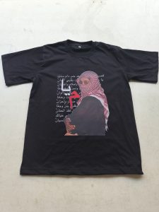 Tujuan Pemesanan: Membuat kaos custom dengan dua desain yang berbeda, mencakup elemen foto/ilustrasi kompleks (Arab) dan desain logo teks bold (OJOL), memastikan hasil cetak yang detail dan warna yang solid pada kaos hitam.