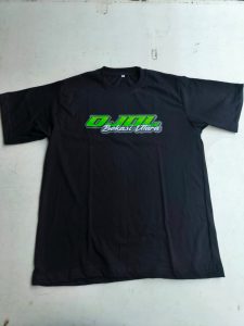 Ringkasan Proyek: Joy Cloth Sablon & Konveksi dipercaya mengerjakan 2 pcs kaos custom satuan, keduanya menggunakan teknik Sablon DTF pada bahan Cotton Combed 24s hitam. Proyek ini menyoroti fleksibilitas sablon DTF dalam mencetak full colour pada kain gelap untuk berbagai jenis desain: