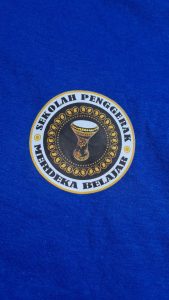 - Dada Kiri: Logo komunitas/sekolah dicetak kecil dengan detail tinggi.