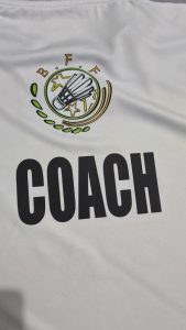 Desain Sablon: Logo BFF berbentuk lingkaran dengan gambar shuttlecock dan bintang, serta inisial B.F.F. di sekelilingnya.