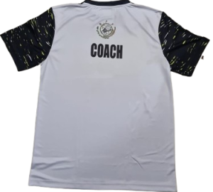 Aplikasi Logo: Sablon DTF (Digital Transfer Film). Aplikasi ini dipilih karena kemampuannya mencetak desain warna-warni yang detail pada kain dryfit dengan hasil yang elastis dan tidak mudah retak.